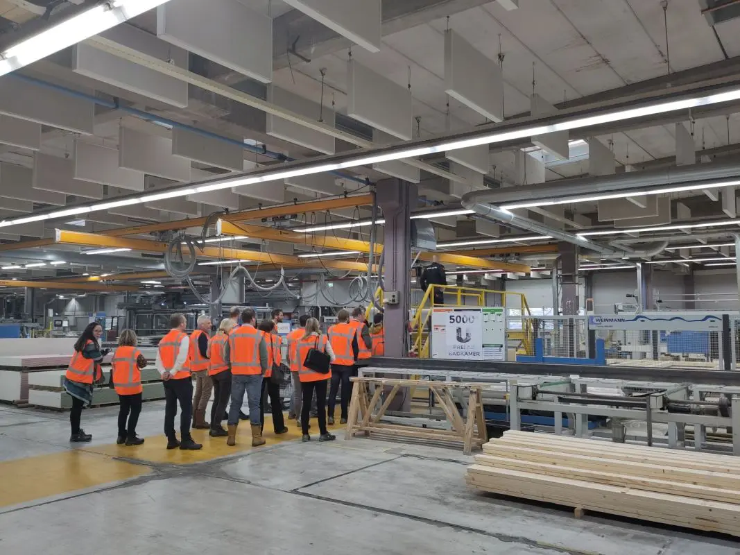 Hoe gaat de productie van modulaire woningen in zijn werk? Dat konden de deelnemers zelf ervaren tijdens een bezoek aan de fabriek van flexwoonproducent Ursem Modulaire Bouwsystemen in Wognum. Tussen de prefab badkamers lieten de bevlogen medewerkers zien hoe modulaire bouw in zijn werk gaat. Alle modules worden in de fabriek gemaakt en op de bouwplaats in elkaar gezet. “Waarom zouden we alles uniek willen bouwen? Als we de woningnood op willen lossen is standaardiseren – met enige mate van flexibiliteit- het toverwoord”, aldus directeur Ed Lokhorst. Net als de woningen van Finch, zijn ook de woningen van Ursem een duurzaam en snel alternatief voor traditionele bouw. Zo is afval tijdens de productie 9 procent tot 14 procent minder dan bij traditionele bouw en worden de woningen tot wel 40 procent sneller geproduceerd in de fabriek.
