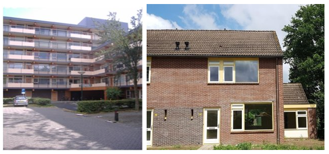 Foto, v.l.n.r.: Een complex van Vivestein Wijk bij Duurstede waar een friendswoning aangeboden wordt en de ‘friendswoning’ in Twello (zie onder)