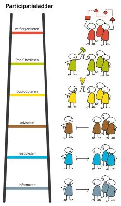 Als dit soort factoren veel invloed heeft op de plannen voor een wijk, kan participatie makkelijk sluitpost worden. De plek op de ladder moet dan vooral passen binnen het proces. Participatie kan bijvoorbeeld een manier zijn om draagvlak te vergroten voor plannen waar weinig meer te kiezen valt. Als bewoners zich daardoor niet serieus genomen worden, kan er veel weerstand komen tegen de plannen. Gemeenten, en gemeenteraadsleden, willen dat graag voorkomen. Wat helpt? Door als raad voorafgaand aan het proces in de wijk na te denken over de participatie-ambitie van de gemeente én de betrokkenheidswensen en -mogelijkheden van bewoners in de wijk.