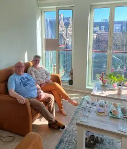 Drie maanden na het eerste contact met de seniorenmakelaar zitten Karin (60) en Huub (70) op de bank in hun zonovergoten, nieuwe appartement. Hun woning in het centrum van Delft was bij oplevering nagenoeg instap-klaar. Met een likje verf hier en daar en een nieuwe vloer kon het stel al vlot verhuizen. Karin: “We zijn zo blij met dit appartement. Het voelt alsof we de loterij hebben gewonnen.”