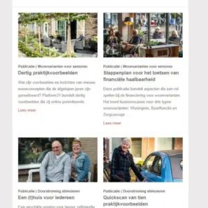 Het aantal senioren in Nederland stijgt en ze wonen het liefst zo lang mogelijk zelfstandig. Om dat mogelijk te maken zijn nieuwe woon(zorg)vormen nodig, waar ouderen prettig oud kunnen worden. Overheden, corporaties, zorgorganisaties en ook senioren zelf komen in actie om aanbod van en animo voor senioren- of levensloopbestendige woningen te vergroten. Ze zoeken naar geschikte locaties met passende voorzieningen en naar mogelijkheden om de doorstroming van senioren te stimuleren. Ook zoeken ze oplossingen voor praktische belemmeringen en cofinanciering om businesscases rond te krijgen.